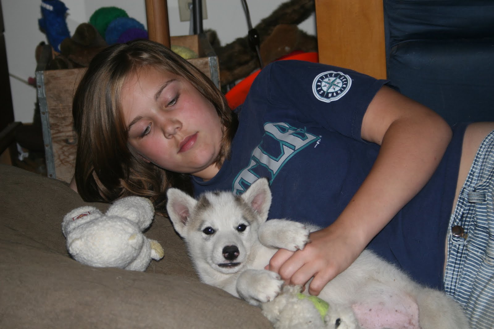 Here she is hanging out with little Mighty (her FAVORITE of all the puppies!).